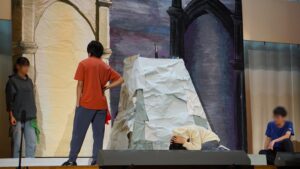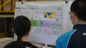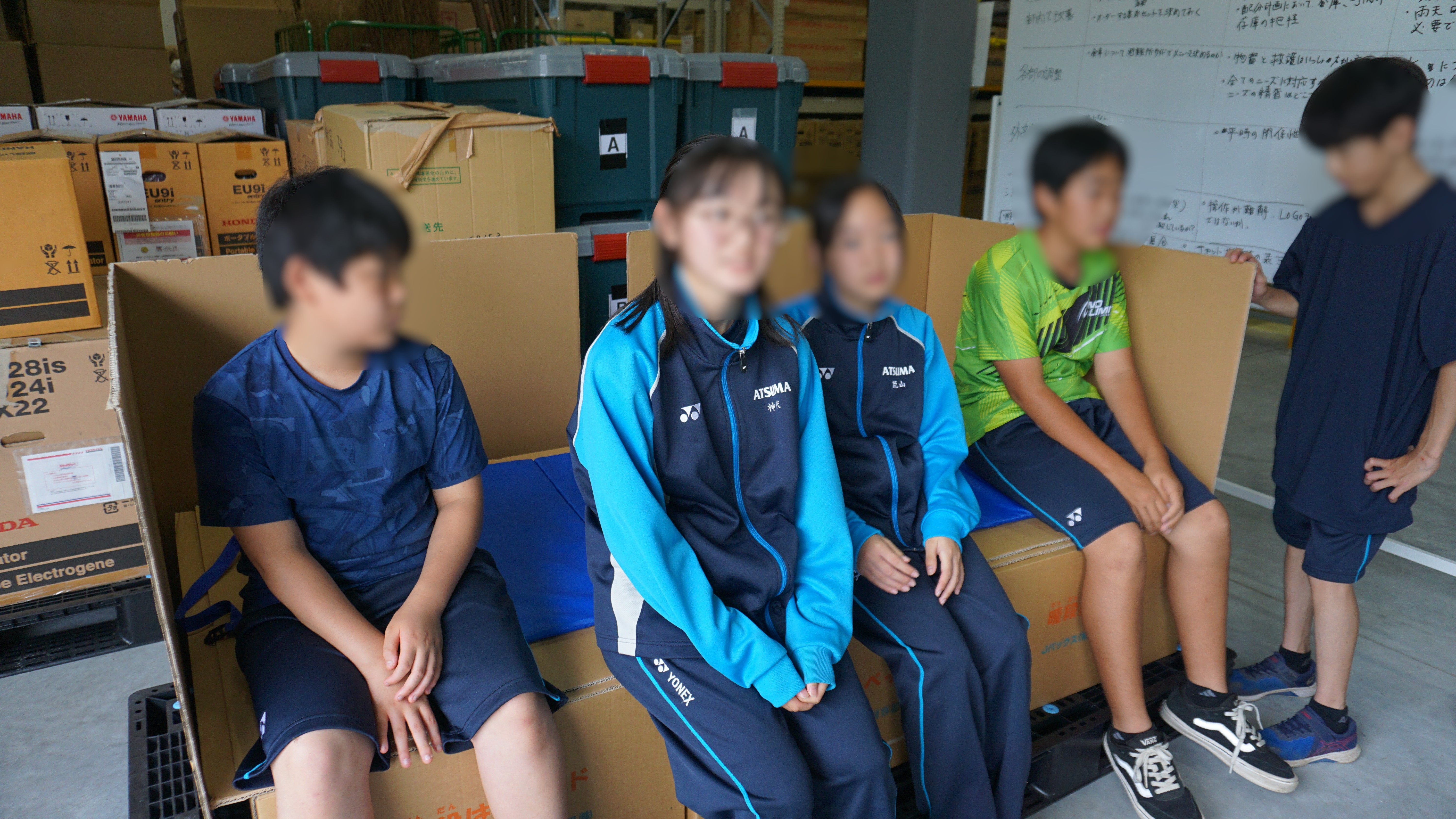 避難訓練後、今年の4月に町内に新設された【厚真町防災備蓄倉庫】に見学に行き、