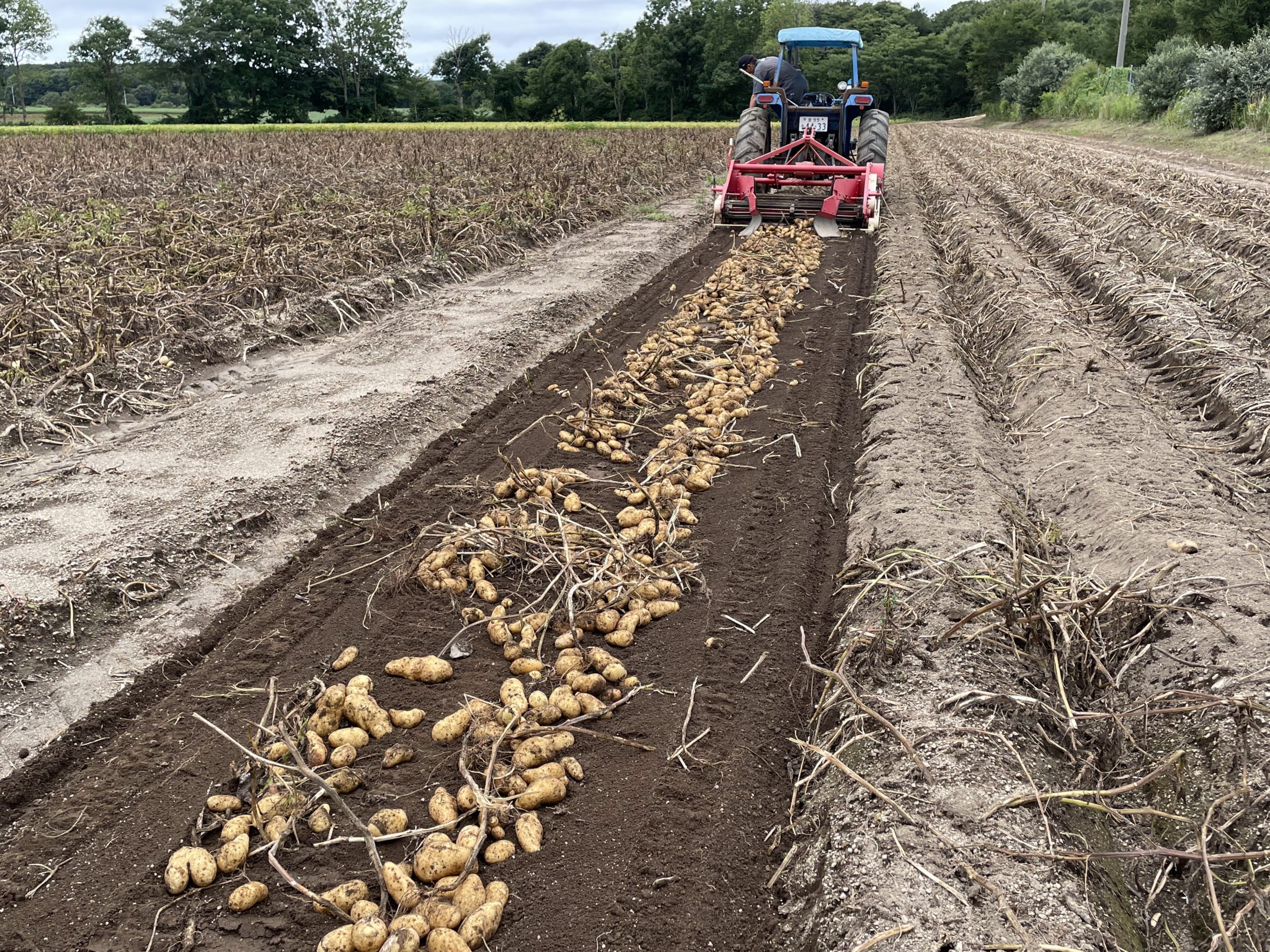 トラクターで畑を掘り起こしていったところから、次から次へとイモがゴロゴロと出てくる様子は、見ていてとても気持ちが良かったです。