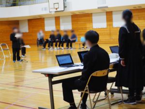 始めに、3年生が中心となって取り組んだ生徒会事務局・委員会前期活動反省と、一般会計中間決算の報告を書面で行い、その後、新たに2年生が中心となって取り組む後期の活動計画・方針についての説明と、それに対する質疑応答を行いました。